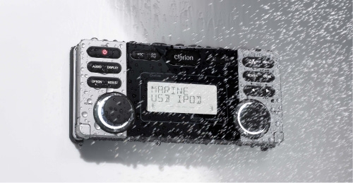 Das Clarion CMD8 ist zertifiziert für hohen Schutz gegen das Eindringen von Wasser und für seine Beständigkeit gegen Meersalz. Gummidichtungen und integrierte Ablaufkanäle sorgen dafür, dass Wasser draußen bleibt.