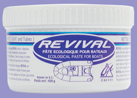 Die ökologische Paste REVIVAL reinigt, entfettet, poliert und schützt. Sie wurde speziell für die Pflege von Booten konzipiert: sie eliminiert Gelbstich, Kalk, Rost, Spuren auf dem Gel Coat und dem Rumpf. Auf einen zuvor befeuchteten Schwamm ein bisschen von der Paste geben, durch Zusammendrücken zum Schäumen bringen und unter Reiben auftragen, dann abspülen. Dose mit 450 g. |